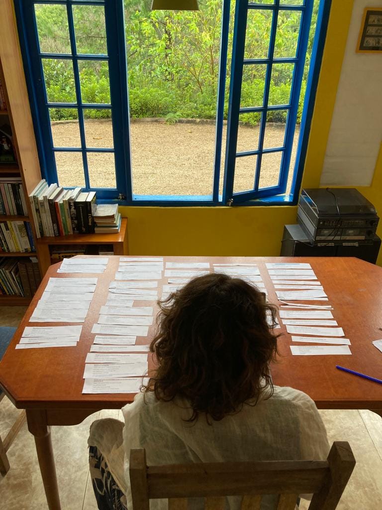 Dani, que importante essa edição! Gostei muito de ler você, Clarice, Lubi, Lorena. E acho que no fim é na brecha que a magia acontece né? E fiquei pensando, acho que arrumar a mesa é começar a escrever. Que cadernos ficam, que livros ficam, quais vão pra estante. Com quem você quer conversar? Enfim, passaria o dia conversando com vocês. Obrigada pela faísca/provocação, amei participar. Vamos juntas!